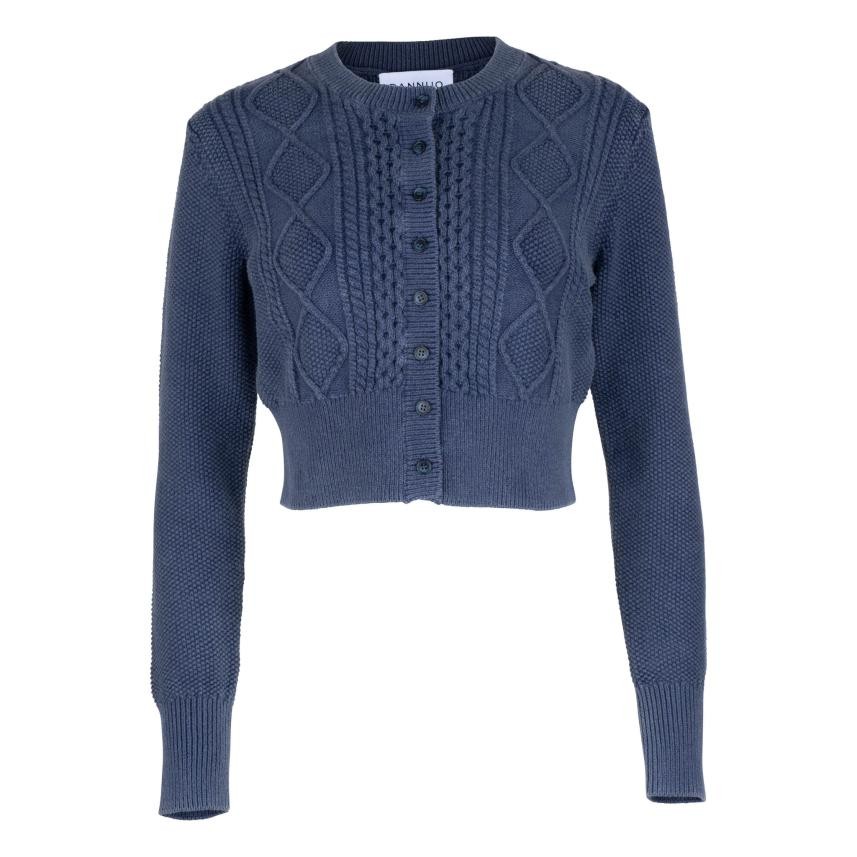Γυναικείο πλεκτό κοντό πλεκτό μπλε ζακετάκι σε μπλε ναυτικό μπλε | Πουλόβερ Dannijo