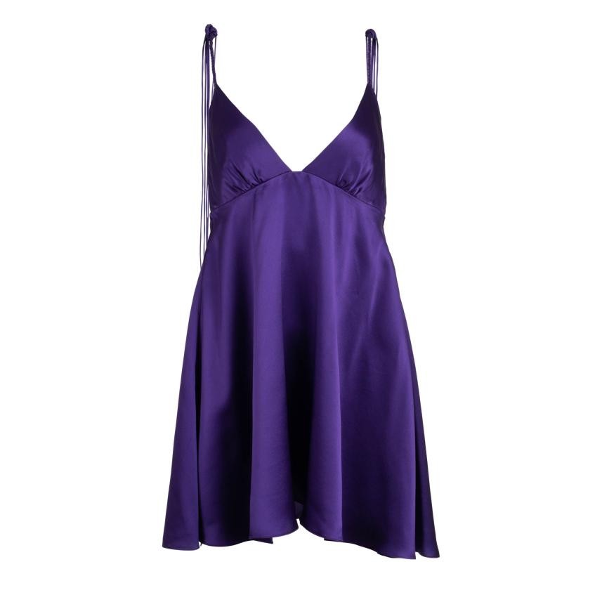도시에서의 밤 — 하지만 편안하게 보내세요. 매력적인 엠파이어 허리, 산뜻한 실크 실루엣, 그리고 스트링 장식이 있는 섹시한 로우컷 백이 특징인 베이비돌 미니 드레스는 시크하면서도 사랑스러운 매력을 지녔습니다. 베이비 핑크, 바이올렛, 누아르 색상: